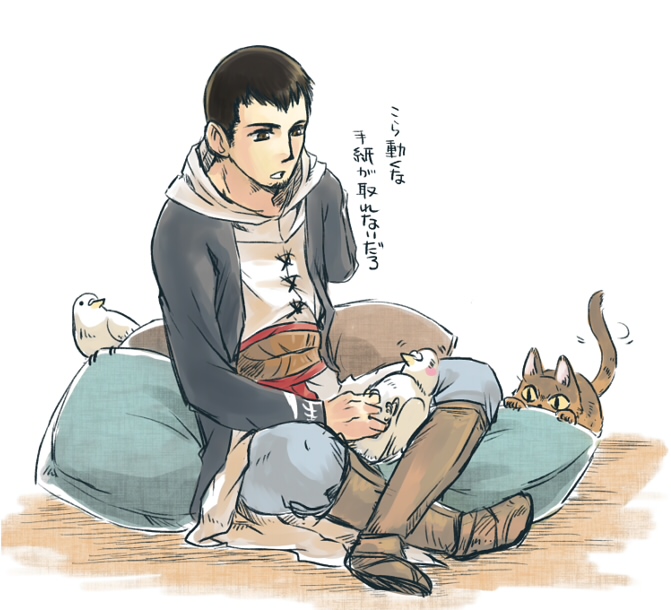 ○ Autre ? : Elyas a un chat, noir aux yeux dorés, nommé Aquila. Un chat très casse-cou qui échappe souvent à la surveille de son propriétaire pour aller faire les plus folles cabrioles dans le château. Elyas a souvent cru le perdre au cours des années précédentes, si bien qu'il se demande si l'histoire des 9 vies des chats ne serait pas réelle avec le sien. Le chat aime d'ailleurs bien parfois réussir à se glisser on ne sait pas trop comment, sachant qu'Elyas a le sommeil léger, dans la manche vide de son propriétaire s'il fait une sieste pour en faire une aussi.